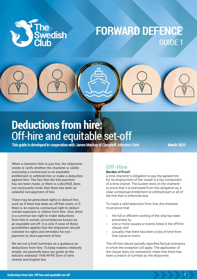 This Guide looks at the question of off-hire and equitable set-off. Developed in collaboration with James Mackay of CJC (Campbell Johnston Clark)