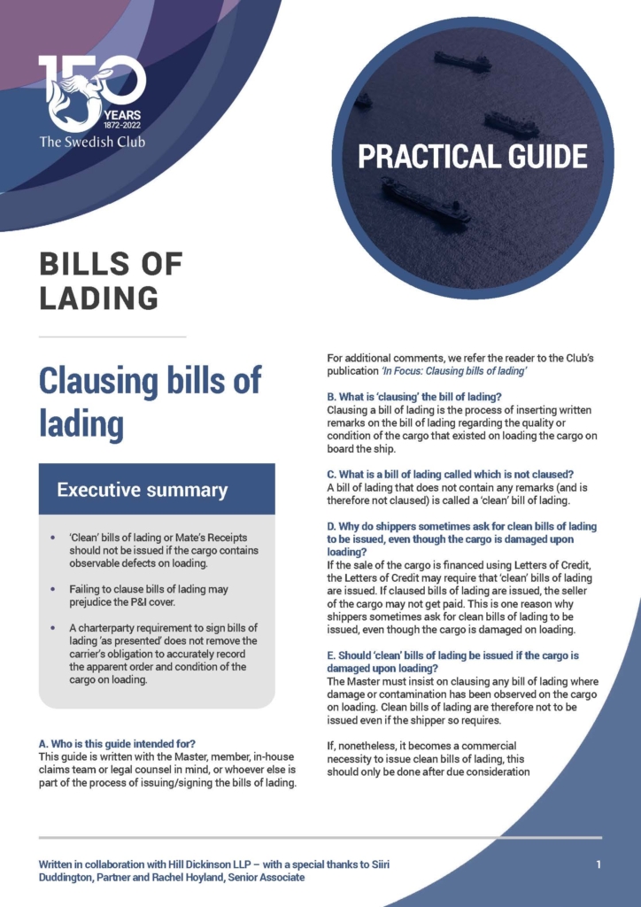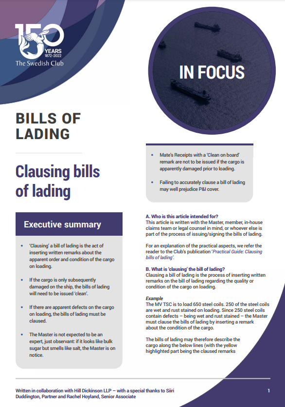 Charterparties and Bills of Lading are the cornerstones of shipborne trade. However, it is not uncommon that they give rise to disputes between the contracting parties. The articles below look at some of the issues that tend to arise and aim to assist Members in their day-to-day business.