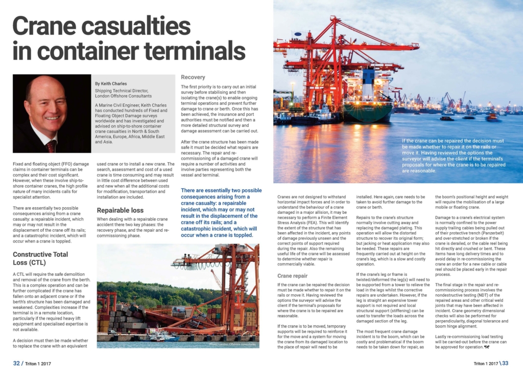 Fixed and floating object (FFO) damage claims in container terminals can be complex and their cost significant. However, when these involve ship-to shore container cranes, the high profile nature of many incidents calls for specialist attention.