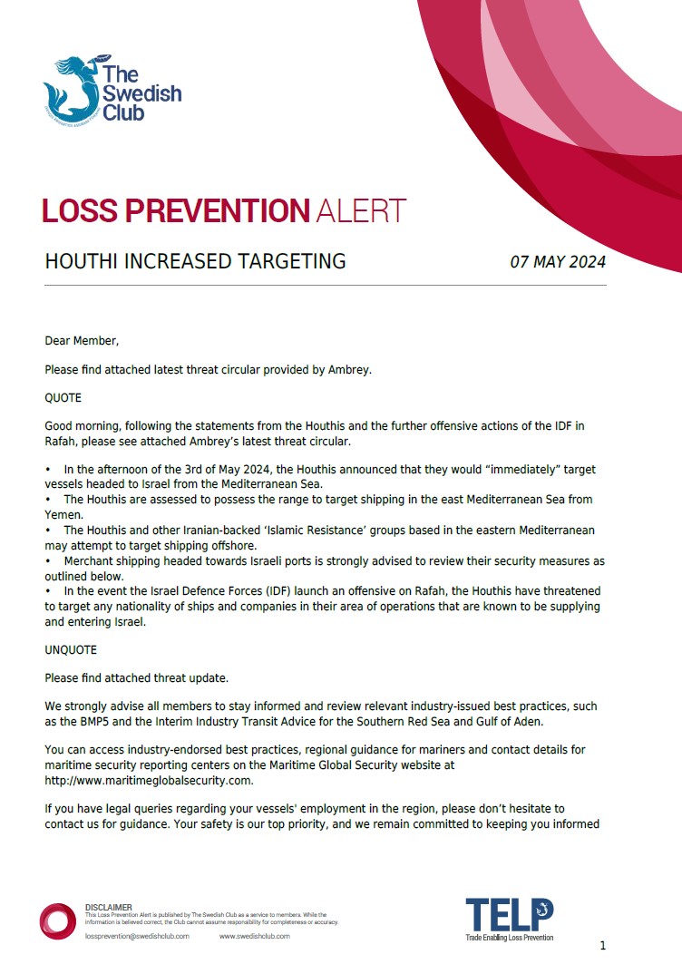 Don’t hesitate to contact us if you have any questions or need guidance lossprevention@swedishclub.com.